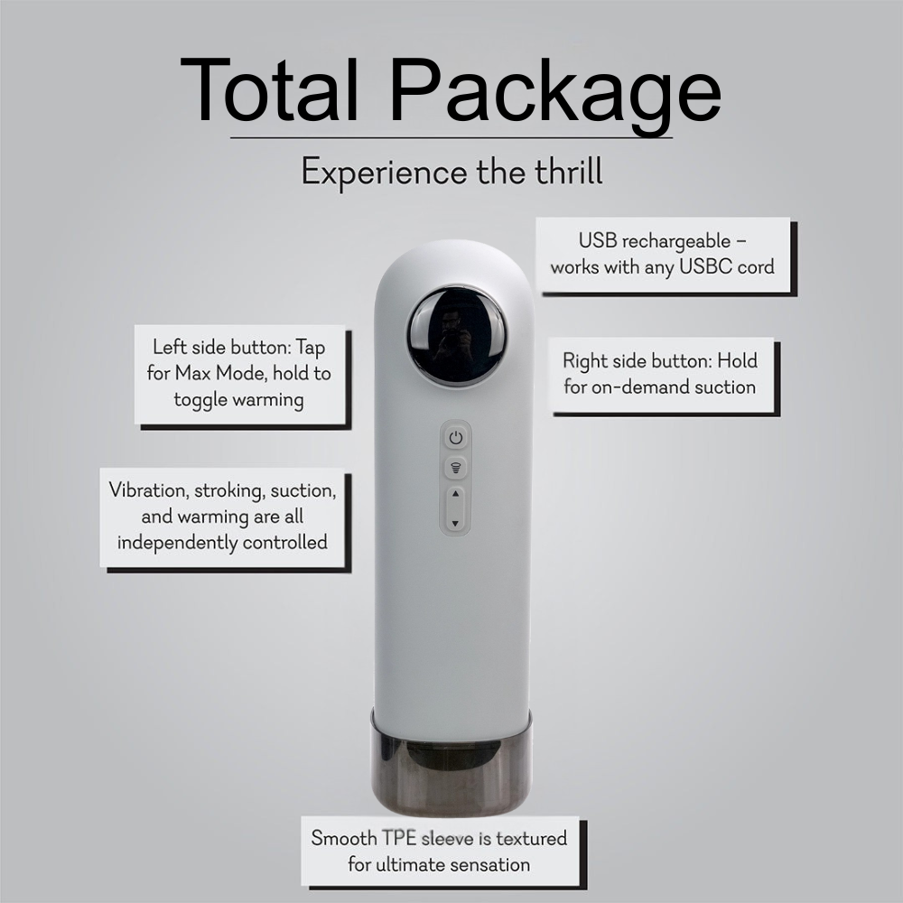 Total Package is here to meet your every need. Vibration? Check. Warming? Check. Stroking? Suction? Check and CHECK.